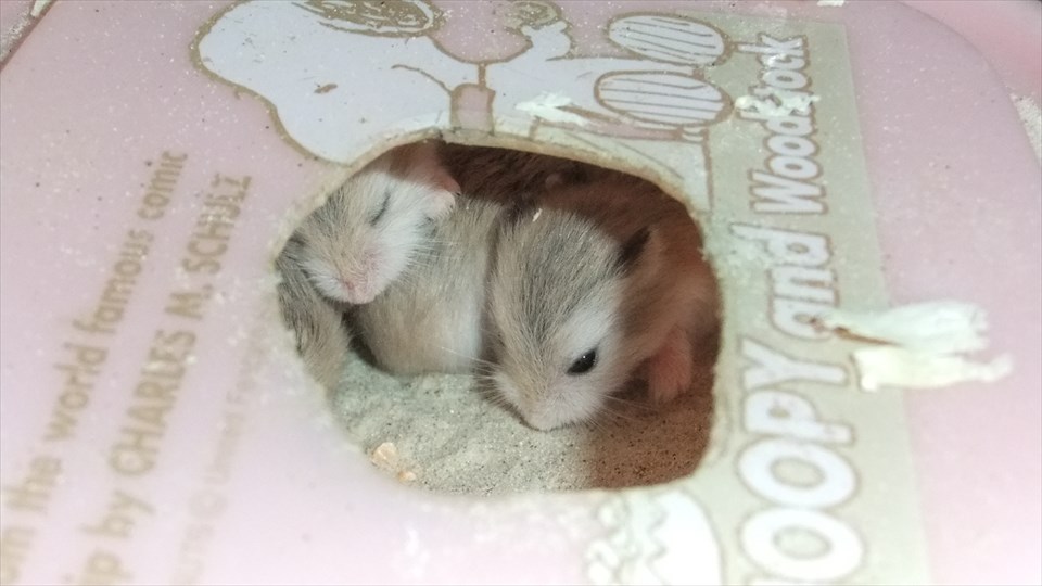 これ以上増やさないためにロボロフスキーのオスとメスを分けたいですが、今の赤ちゃん状態だと母ハムから引き離すと死んじゃうのと、他の大人ハムスターに見慣れない弱いハムスターということでいじめ殺されるのでは、と思いました。
