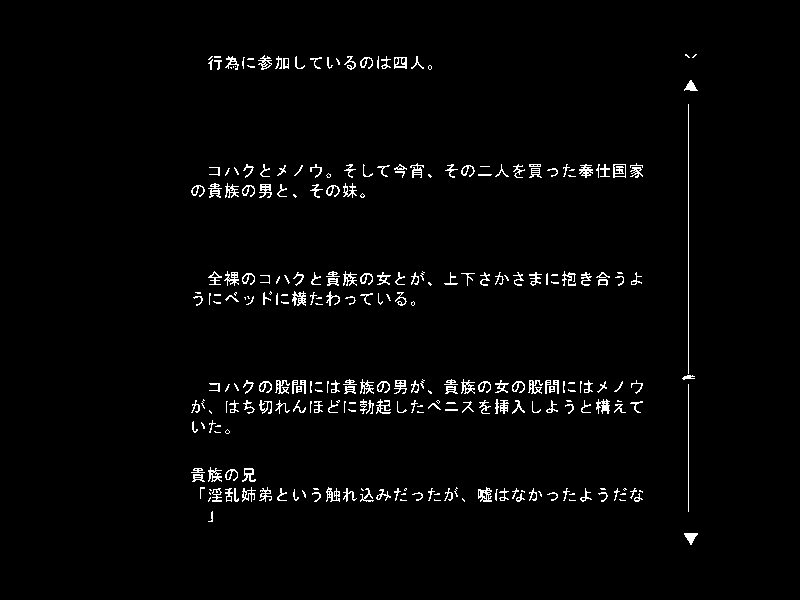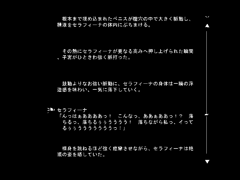 ・・・伝説の娼姫と呼ばれるダークエルフ。エロいことに関しては他の追随を許さないというような設定ですが、プレイしていて期待したほどではないという感想です。(作中ではこのヒロインだけ「様」をつけられることが多かったりして特別枠扱いしようとしてるとは感じられますが、プレイ時にリアルで感じられる別格さは期待したほどではないというやつです)