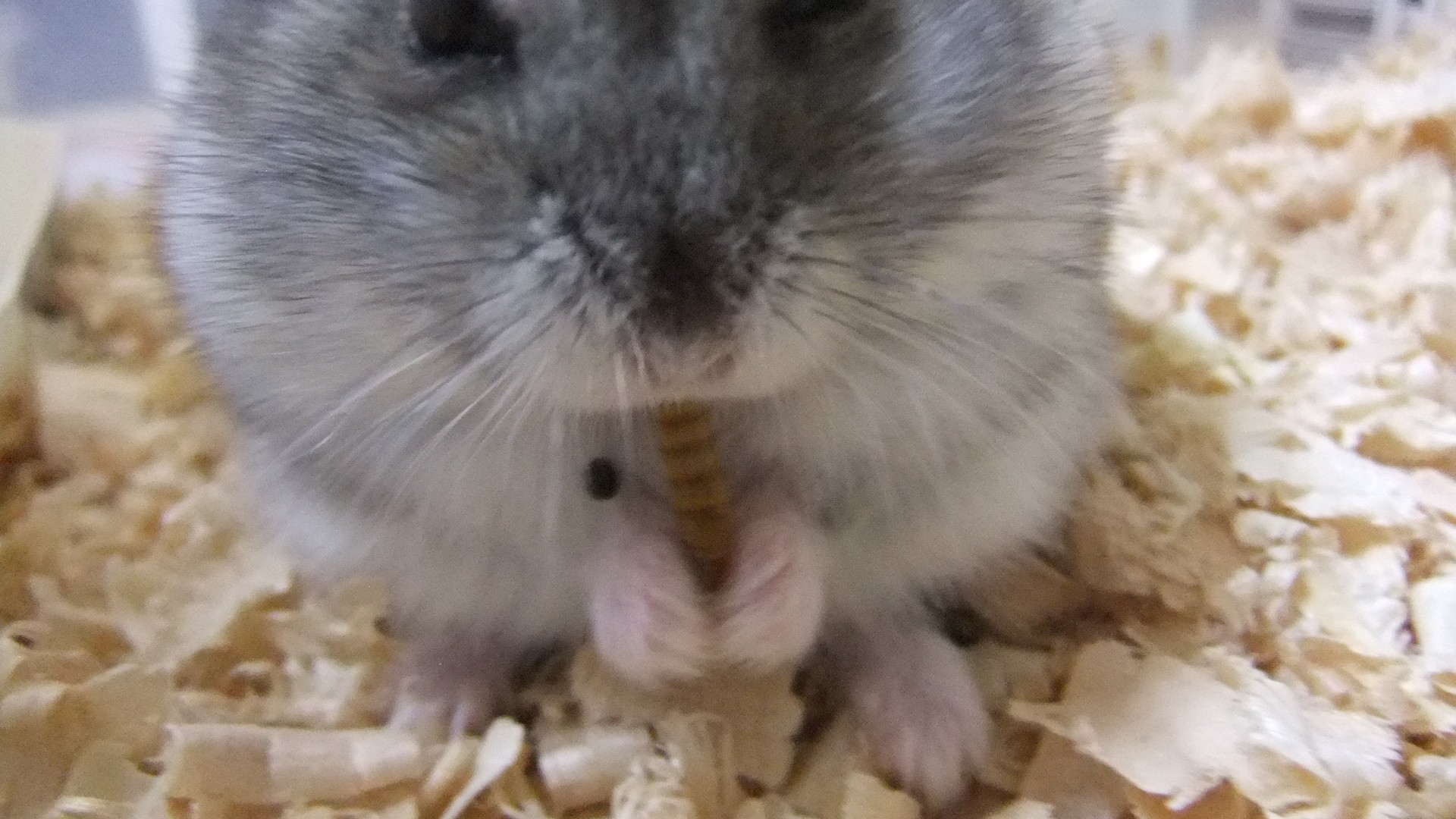 今までに飼ったハムスターはいずれも生き餌ミルワームを喜んで食べます。